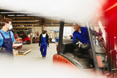 • Två kollegor arbetar tillsammans i en tillverkningslokal